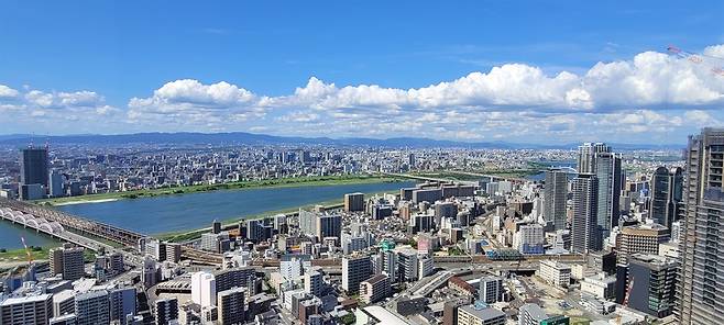 오사카의 가운데 쪽엔 요도강이 흐르고 있다. 마치 서울의 한강처럼 수많은 다리로 연결하여 남과 북을 지나다닌다. 강물은 일본에서 가장 큰 호수인 비와호(湖)에서 시작해 교토를 흘러 오사카를 가로지르고, 오사카만에서 바다와 만난다. 묘하게도 요도강의 남쪽에 유명한 관광지와 주요 행정관청이 몰려있다.