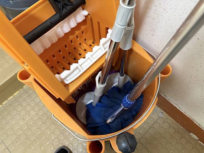 | ▲ 환경미화원은 마대와 대걸레 등 청소도구를 잘 관리해야 한다. |