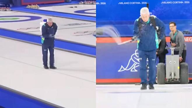 [마크 캘런/컬링 아이스 테크니션 : 만약 물을 뿌리지 않으면 얼음 표면이 완전히 평평해져서 스톤이 달라붙어 멀리 가지 못할 겁니다. 저희는 매 경기마다 새 얼음처럼 완벽하게 준비합니다.]