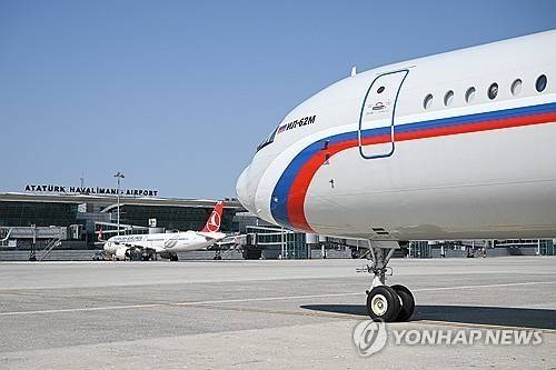 [일류신 Il-62M 기종이 지난해 7월 우크라이나 회담에 앞서 러시아 대표단을 태우고 튀르키예에 착륙한 모습 (타스=연합뉴스 자료사진)]