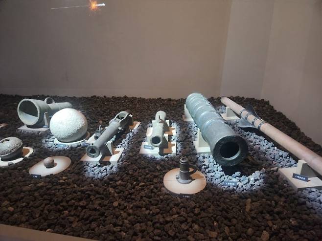 | ▲ 보물 647호로 지정된 천자총통을 비롯한 조선 수군의 강력한 화기(화포와 탄환)들이 전시되었다. |