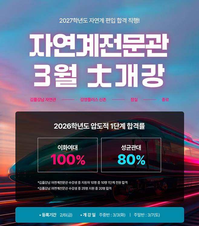 메가스터디교육 김영편입, 2027학년도 대학편입 대비 자연계전문관 3월 개강