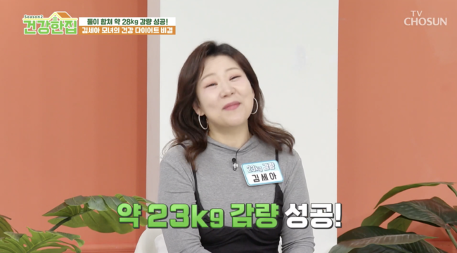 김세아는 “23kg 감량하고 건강 다이어트 전도사로 변신한 김세아다”라고 소개했다. 김세아의 어머니는 79세라며 “딸 덕분에 최근 5kg 감량하고 열심히 다이어트하고 있다”고 밝혔다. 이들 모녀는 합쳐서 약 28kg 감량에 성공했다.