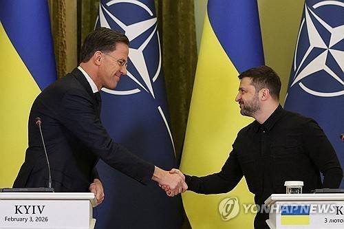 [마르크 뤼터 나토 사무총장과 볼로디미르 젤렌스키 우크라 대통령 (로이터=연합뉴스 자료사진)]