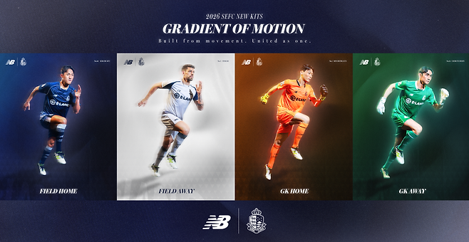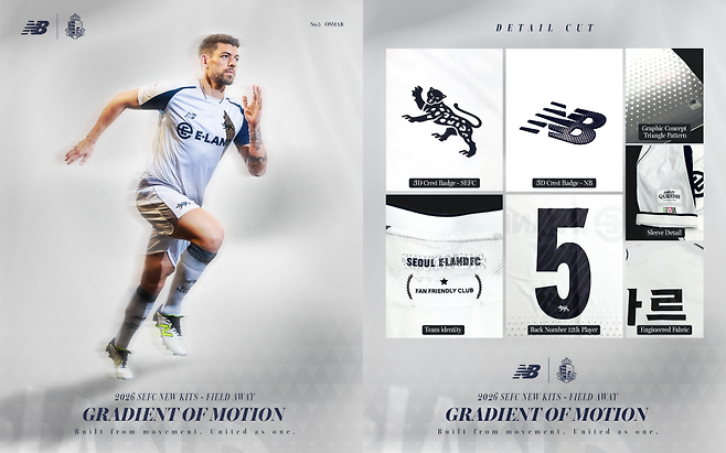 서울 이랜드 FC가 뉴발란스와 함께한 오는 2026시즌 유니폼 'GRADIENT OF MOTION(움직임의 흐름)'을 공개했다.