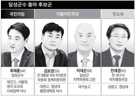 오는 6·3 지방선거 대구 달성군수 선거는 재선을 노리는 현역 단체장과 도전자 간 대결 구도로 펼쳐질 전망이다.