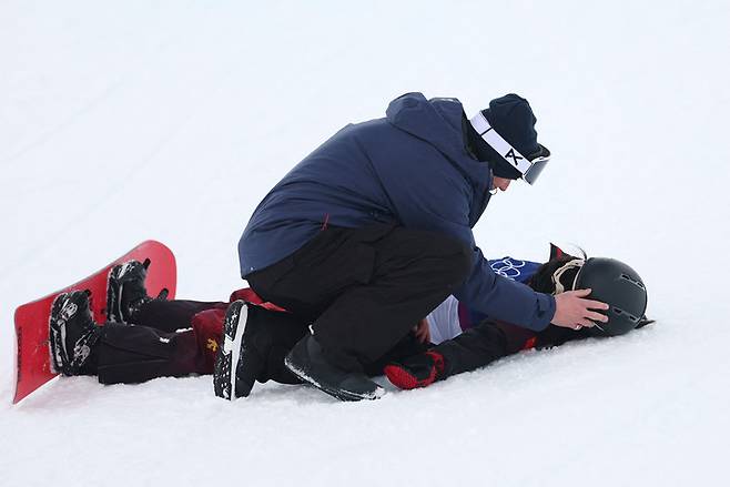 '평창 銀' 스노보드 中 류자위, 경기 도중 고꾸라져 큰 부상...경기 중단 사태까지 [2026 밀라노]