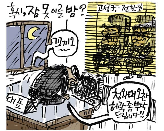 [최경락 만평] 혹시, 잠 못 이룬 밤? 최경락 2026. 2. 11. 20:39 음성으로 듣기 음성재생 설정 이동 통신망에서 음성 재생 시 데이터 요금이 발생할 수 있습니다. 글자 수 10,000자 초과 시 일부만 음성으로 제공합니다. 남성 여성 느림 보통 빠름 음성 재생하기 닫기 음성 재생 중지 번역 설정 번역beta Translated by kaka i 한국어 - English 영어 日本語 일본어 简体中文 중국어 Nederlands 네델란드어 Deutsch 독일어 Русский 러시아어 Malaysia 말레이시아어 বাঙ্গোল ভাষা 벵골어 tiếng Việt 베트남어 Español 스페인어 اللغة العربية 아랍어 Italiano 이탈리아어 bahasa Indonesia 인도네시아어 ภาษาไทย 태국어 Türkçe 튀르키에어 Português 포르투갈어 Français 프랑스어 हिन्दी 힌디어 닫기 번역중 Now in translation 글씨크기 조절하기 글자크기 설정 파란원을 좌우로 움직이시면 글자크기가 변경 됩니다. 가 매우 작은 폰트 작은 폰트 보통 폰트 큰 폰트 매우 큰 폰트 가 이 글자크기로 변경됩니다. (예시) 가장 빠른 뉴스가 있고 다양한 정보, 쌍방향 소통이 숨쉬는 다음뉴스를 만나보세요. 다음뉴스는 국내외 주요이슈와 실시간 속보, 문화생활 및 다양한 분야의 뉴스를 입체적으로 전달하고 있습니다. 닫기 인쇄하기 Copyright © 저작권자 © 중부일보 - 무단전재 및 재배포 금지