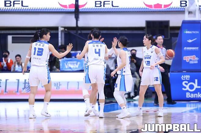 우리은행은 김단비가 20점 14리바운드, 이명관이 13점을 기록했다. 심성영도 10점을 보탰다. 신한은행은 신이슬(18점 4리바운드 2어시스트), 이혜미(11점 4리바운드) 등이 분전했지만, 역부족이었다.