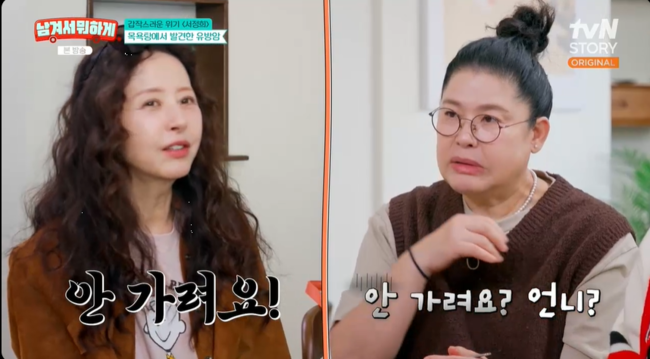 이날 토크의 정점은 유방암 수술 이후 대중목욕탕을 이용하며 겪은 일화였다.