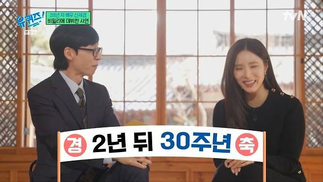 신세경은 인생의 절반 이상을 연기와 함께해온 배우다. 유재석이 "세경 씨가 벌써 28년 차 배우"라고 말하자, 신세경은 "저도 지금 알았다"며 머쓱하게 웃었다. 유재석은 "2년만 있으면 데뷔한 지 30년이 된다"라고 덧붙이며 놀라움을 표했다.