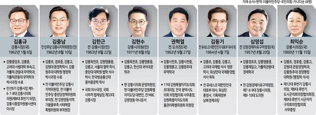 국민의힘에서는 김홍규 현 시장과 함께 권혁열 전 도의장, 김동기 전 유네스코 대사, 최익순 시의장, 심영섭 전 강원경제자유구역청장까지 총 5명이 후보군에 이름을 올리고 있다.