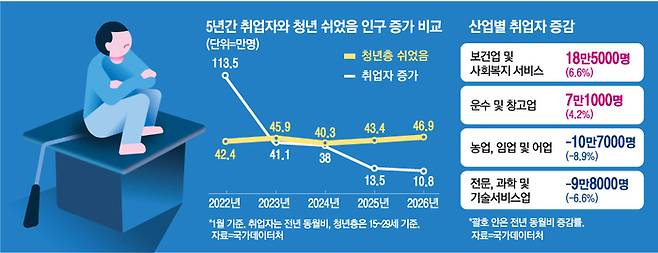 국가데이터처 관계자는 “2022년과 2023년 추세적으로 취업자 수 증가폭이 컸기 때문에 최근에 조정이 일어나는 모습”이라며 “전문·서비스업 등에서 인공지능(AI) 발전으로 신입 직원의 채용이 둔화된 것으로 보인다”고 설명했다.