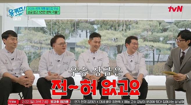 이날 '거북선 빵'으로 세계를 제패한 '2026 베이커리 월드컵' 우승팀이 등장했다. 김종호, 황석용, 김명기, 최용환 셰프는 경력 30년 이상의 제과 기능장이자 베이커리 월드컵 대한민국 국가대표로, 2026년 1월 프랑스 파리에서 개최된 제빵월드컵에서 우승했다.