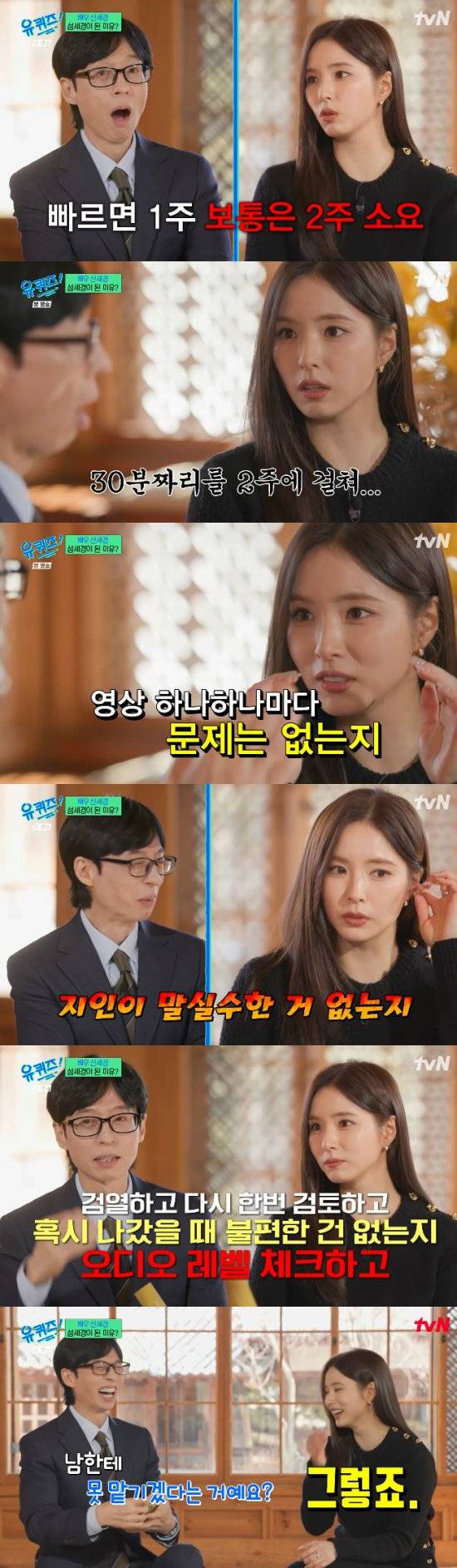 1세대 연예인 유튜버인 신세경은 영상 편집을 직접 한다고 했다. 신세경은 "저는 유튜브를 보면서 편집하는 법을 배웠다. 아마추어다보니까 30분짜리 영상을 편집하는데 2주일이 걸린다"고 했다.