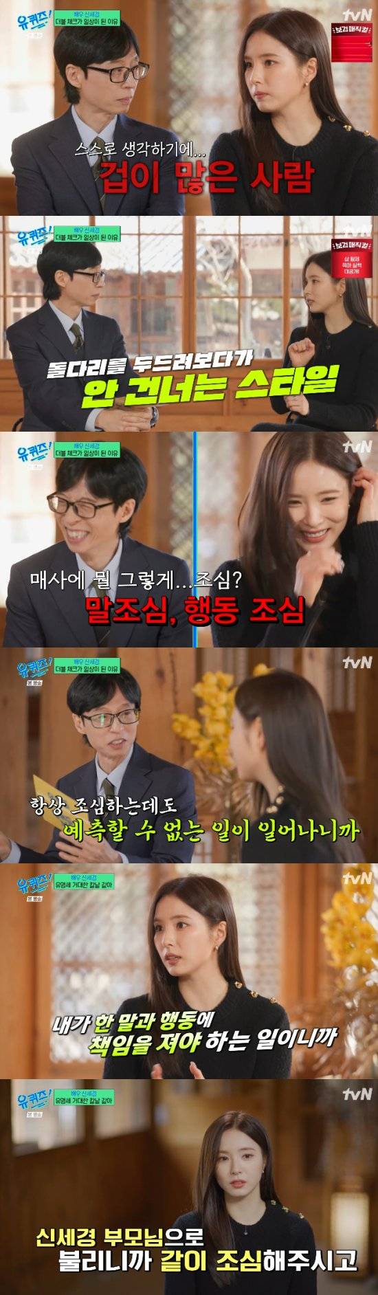 '유퀴즈'에서 신세경이 말조심과 행동조심을 강조했다.