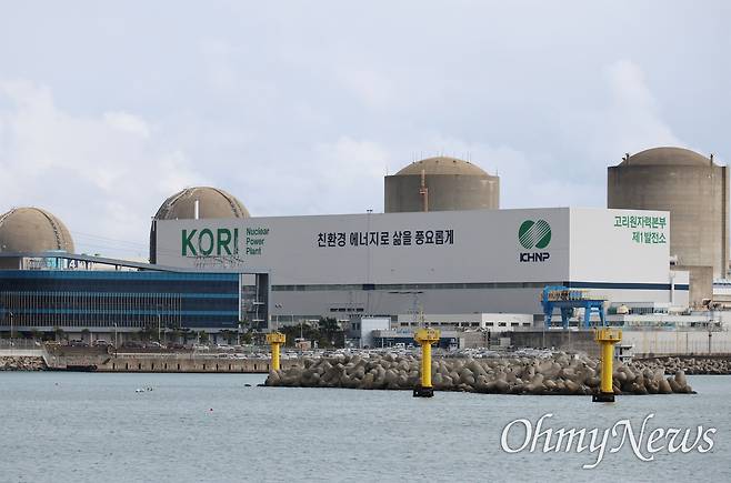| ▲ 부산 기장군 장안읍에 있는 고리원자력발전소. 설계수명이 다해 영구정지된 고리1호기와 계속운전 절차를 밟고 있는 2호기, 그 옆으로 3·4호기의 모습이 보인다. |
