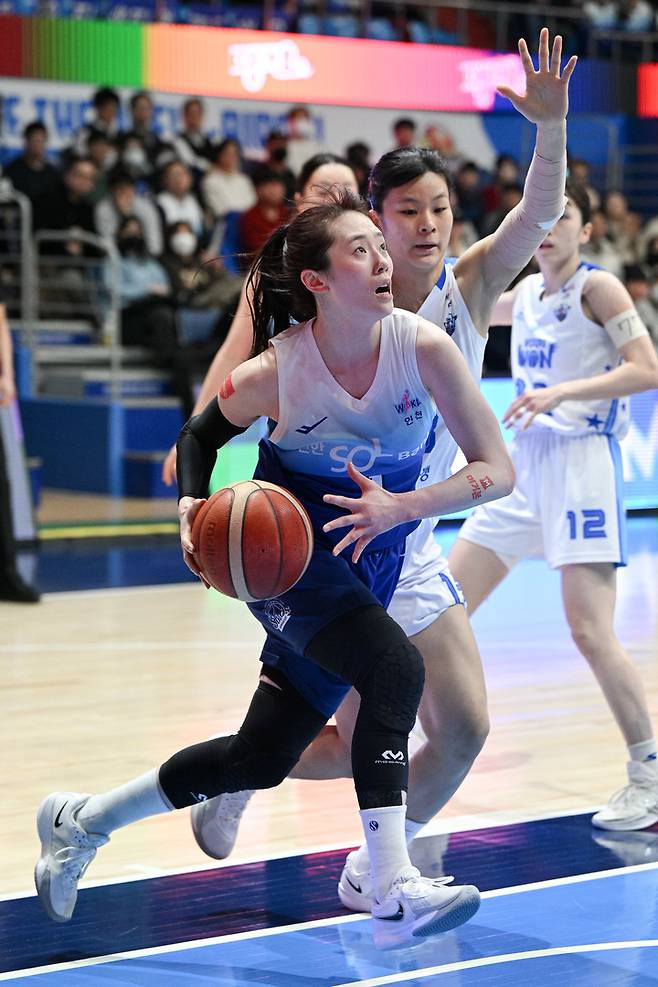 김단비는 경기 종료 27초 전 페인트존 득점을 성공하면서 승부에 쐐기를 박았다.