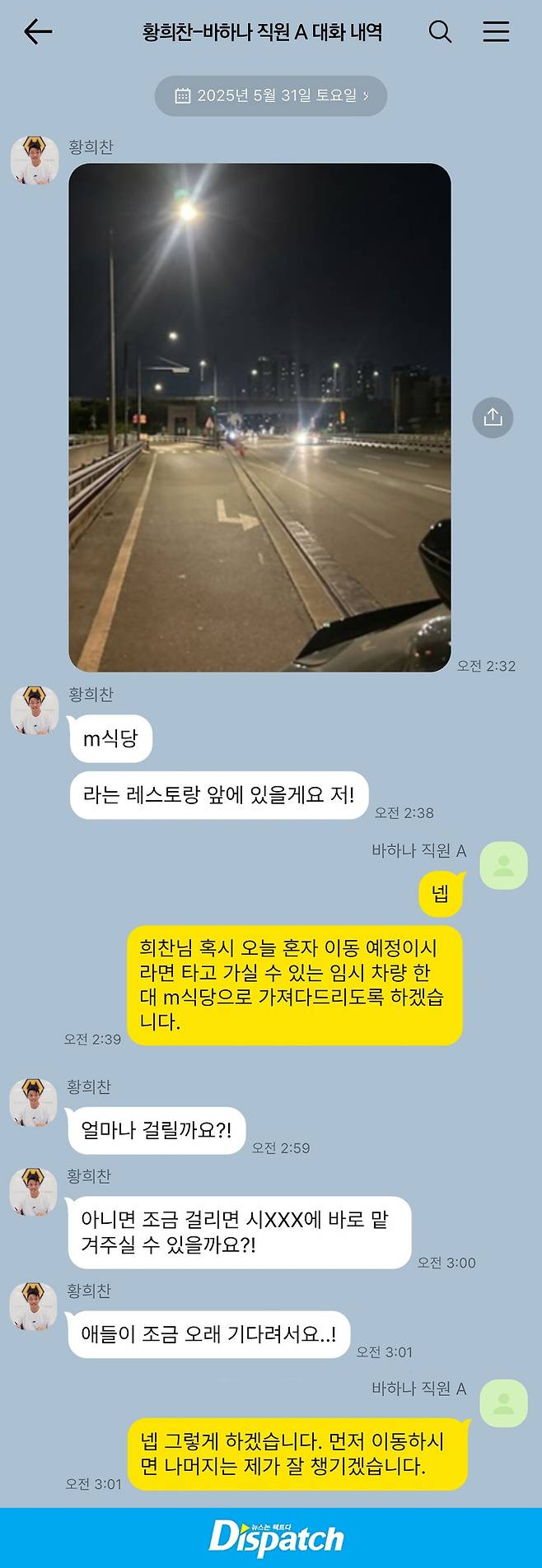 황희찬은 바하나 측에 SOS를 쳤다. 그 시각이 5월 31일 새벽 2시 16분. 황희찬은 엔진 경고등이 들어온 계기판 사진, 자신이 있는 곳의 위치 지도 등을 날리며 출동을 요청했다.