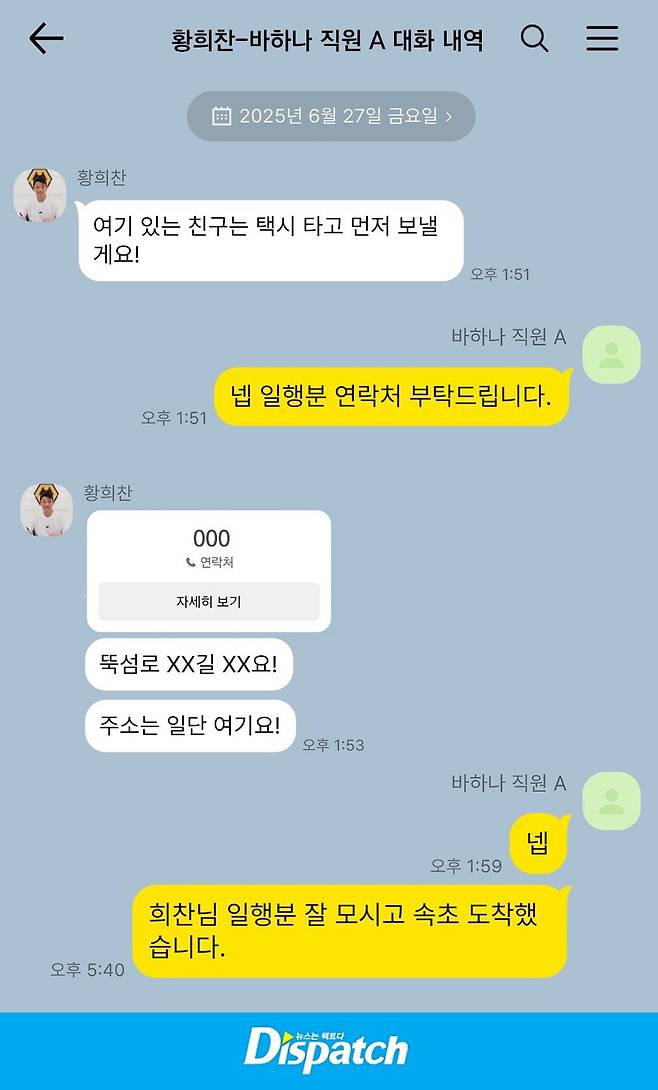 바하나 : 넵. 일행 분 연락처 부탁드립니다.