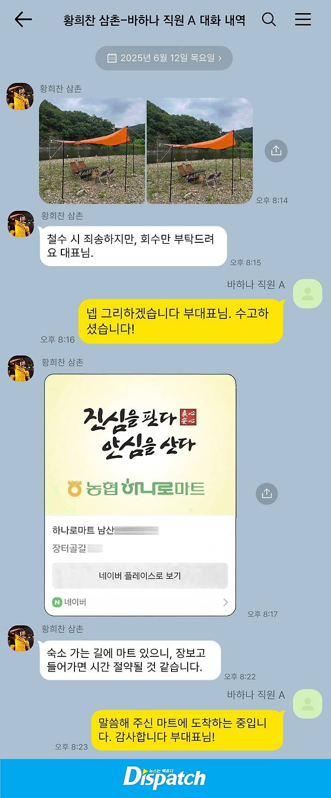 '디스패치'는 사고 당시 통화 및 카톡 내역을 입수했다. 먼저, 통화 내용이다.