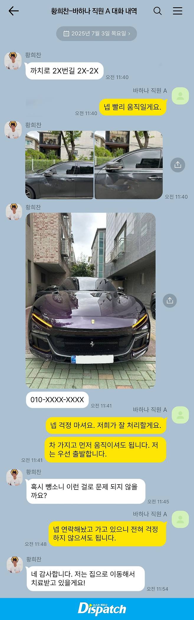 페라리가 퍼졌다. 장소는, 영동대교 진입로. 시간은 새벽 2시 16분. 황희찬은 사고 수습을 위해 어떤 노력을 했을까? ‘디스패치’가 방치 및 이탈에 대해 물었다.