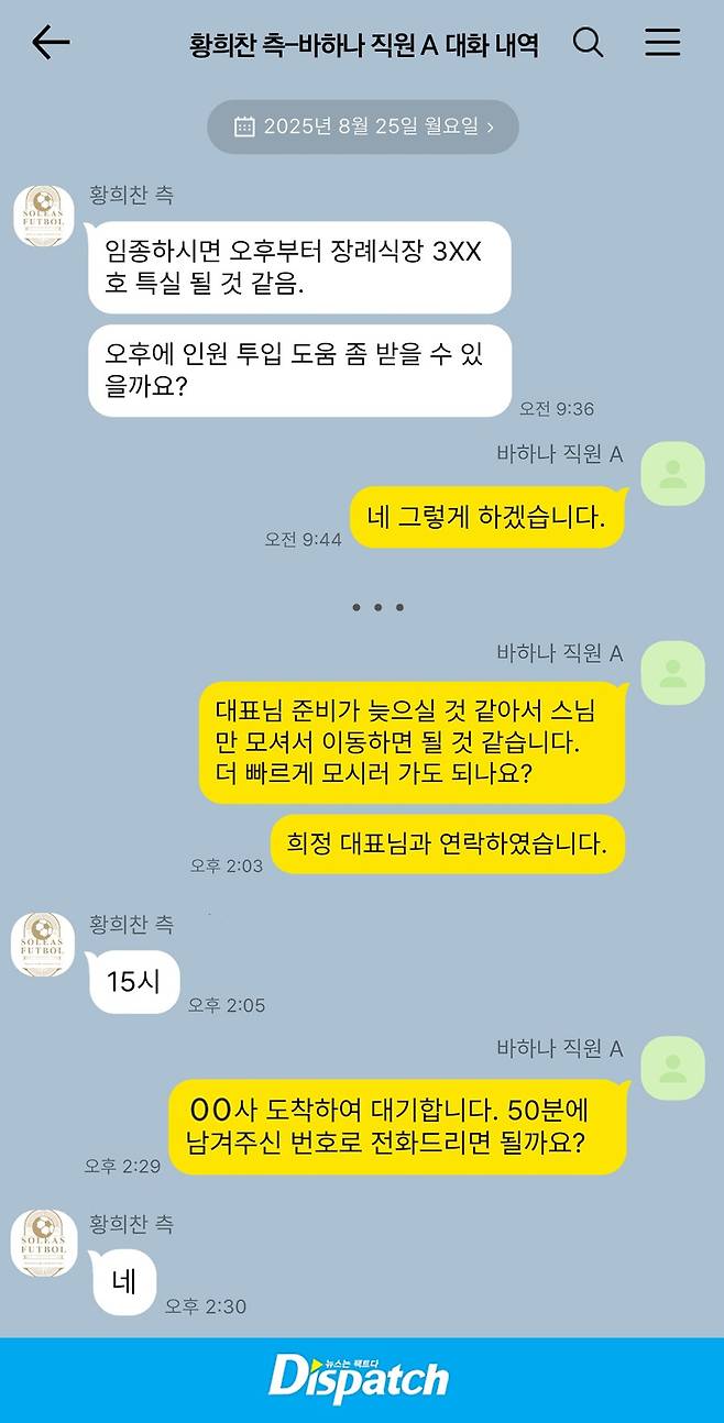 황희찬 측 : 3일간 장례식장에서 도움 줄 수 있는 가용 인력 두 분 정도 있을까요?