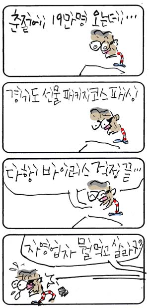 [최경락 꼬투리] 춘절에 19만명 오는데… 최경락 2026. 2. 12. 09:49 음성으로 듣기 음성재생 설정 이동 통신망에서 음성 재생 시 데이터 요금이 발생할 수 있습니다. 글자 수 10,000자 초과 시 일부만 음성으로 제공합니다. 남성 여성 느림 보통 빠름 음성 재생하기 닫기 음성 재생 중지 번역 설정 번역beta Translated by kaka i 한국어 - English 영어 日本語 일본어 简体中文 중국어 Nederlands 네델란드어 Deutsch 독일어 Русский 러시아어 Malaysia 말레이시아어 বাঙ্গোল ভাষা 벵골어 tiếng Việt 베트남어 Español 스페인어 اللغة العربية 아랍어 Italiano 이탈리아어 bahasa Indonesia 인도네시아어 ภาษาไทย 태국어 Türkçe 튀르키에어 Português 포르투갈어 Français 프랑스어 हिन्दी 힌디어 닫기 번역중 Now in translation 글씨크기 조절하기 글자크기 설정 파란원을 좌우로 움직이시면 글자크기가 변경 됩니다. 가 매우 작은 폰트 작은 폰트 보통 폰트 큰 폰트 매우 큰 폰트 가 이 글자크기로 변경됩니다. (예시) 가장 빠른 뉴스가 있고 다양한 정보, 쌍방향 소통이 숨쉬는 다음뉴스를 만나보세요. 다음뉴스는 국내외 주요이슈와 실시간 속보, 문화생활 및 다양한 분야의 뉴스를 입체적으로 전달하고 있습니다. 닫기 인쇄하기 Copyright © 저작권자 © 중부일보 - 무단전재 및 재배포 금지