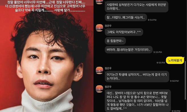 故 정은우, 사망 직전 남긴 먹먹한 메시지…"버텨라, 나도 잘 버티겠다"