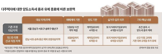 이날 유예 방안이 공식적으로 발표된 만큼 양도소득세 중과 시행 직전까지 매도 타이밍을 저울질하던 다주택자의 매물 출회는 계속될 가능성이 있다는 전망이다. 다만 서울 주요 지역 등 상급지로 분류되는 주택시장은 매수자 우위가 나타나며 5월 9일까지 처분하려는 다주택 매도자와의 가격 줄다리기가 이어질 것으로 보인다.