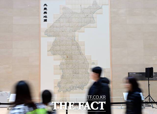 국립중앙박물관은 소장하고 있는 대동여지도의 고화질 데이터를 전통 한지에 출력해 관람객들이 그 웅장한 규모와 세밀한 표현을 한눈에 감상할 수 있도록 했다.