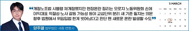 올해 초 고용노동부는 기존 노동조합및노동관계조정법(노동조합법) 시행령 개정안에 대한 노사 양측의 우려를 수렴하고, 기존 제시한 내용을 일부 보완하여 노동조합법 시행령 수정 개정안을 다시 내놓았다. 이번 고용노동부의 시행령 수정 개정안은 노란봉투법 시행을 1개월여 앞두고 이루어진 것으로, 사실상 고용노동부가 적어도 노란봉투법 하에서의 교섭절차와 관련하여서는 최종적으로 입장을 정리한 것 아닌가 하는 생각이다.