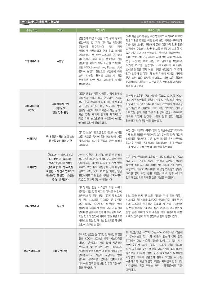 ▲국내 주요 양자 보안 솔루션 구축 사례 [출처: 보안뉴스·시큐리티월드]