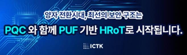 ICTK는 물리적으로 복제 불가능한 PUF (Physical Unclonable Functions) 기반 하드웨어 신뢰점을 중심에 두고, 그 위에서 PQC가 동작하도록 하는 접근법을 택했다. 하드웨어 신뢰점)과 암호 알고리즘을 결합해 키 유출이나 복제, 위조를 구조적으로 차단할 수 있다는 설명이다.