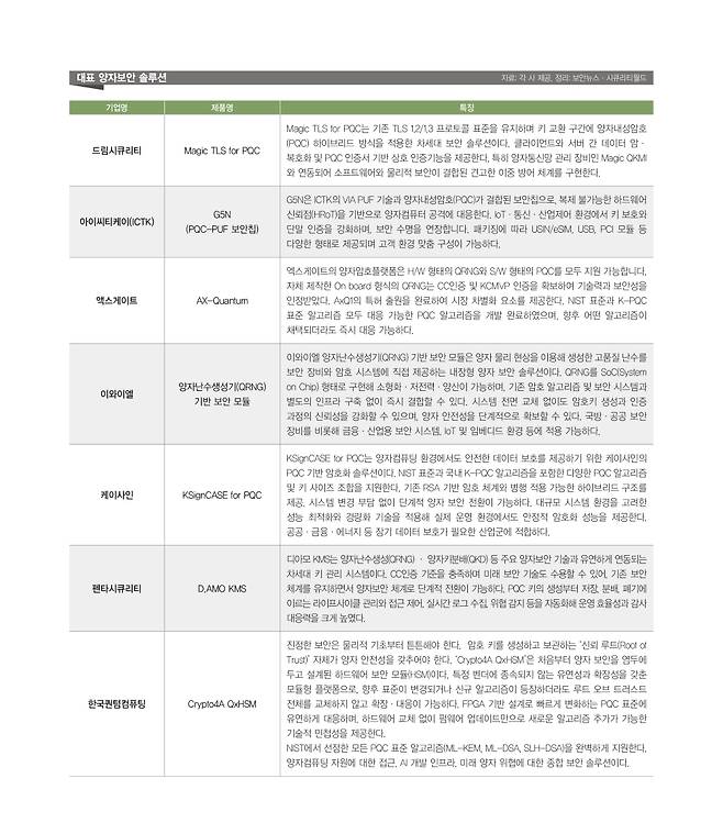 ▲국내 주요 양자 보안 솔루션 [출처: 보안뉴스·시큐리티월드]