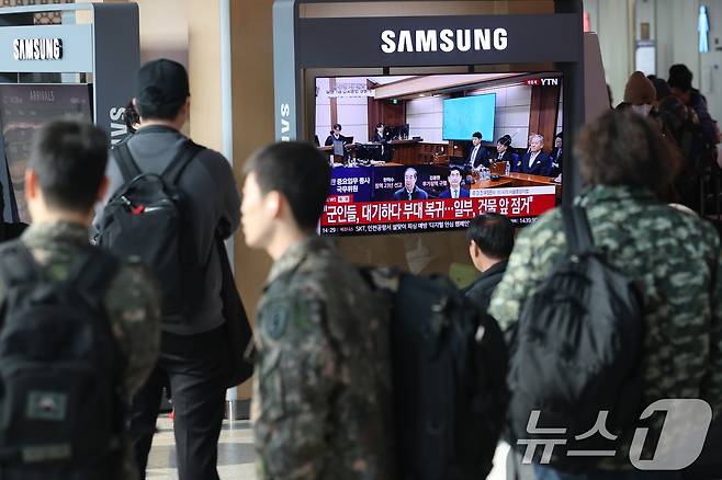(서울=뉴스1) 안은나 기자 = 12·3 비상계엄 당시 언론사 단전·단수 지시 혐의를 받는 이상민 전 행정안전부 장관의 1심 선고일인 12일 서울역 대합실에서 선고 생중계가 나오고 있다.