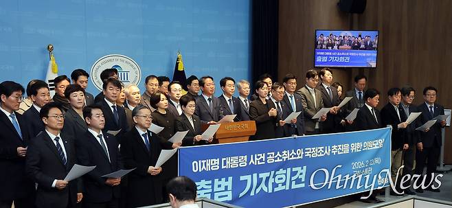 이들은 기자회견문에서 "대통령 당선 후 재판은 중지됐지만 조작된 기소 자체가 폐기된 것은 아니다"라며 "없는 죄를 만들어 국가원수의 국정 수행을 옥죄는 비정상적 상황이 지속되고 있다"고 지적했다. 의원모임은 상반기 국정조사를 개최해 사실관계를 밝히겠다는 계획이다.