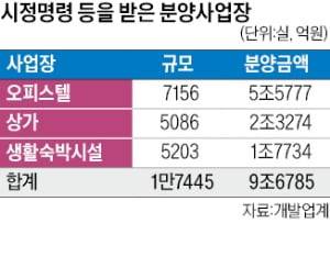 개발업계에 따르면 전국에서 시정명령이나 과태료, 벌금 처분 등을 받은 사례는 61건, 1만7445실 규모다. 이들 사업장의 분양 매출을 합하면 9조6785억원에 달한다. 대규모 소송이 이어지면 부동산 공급 시장 자체가 붕괴할 수 있다는 지적이 나오는 배경이다.