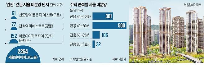 장기 미분양 단지에 대한 관심이 최근 커진 것은 분양가와 기존 매매가가 계속 오르는 상황과 무관치 않다는 분석이 나온다. 박지민 월용청약연구소 대표는 “공사비 증가, 수급 불균형 확대 등에 따른 신축·기축 동반 상승으로 과거에 비싸다고 여겨졌던 미분양 단지의 ‘가격 메리트’가 부각되고 있다”고 평가했다. 다만 서울시에 따르면 작년 12월 기준 전체 미분양(939가구)의 32%(301가구)가 전용면적 40㎡ 이하에 몰려 있다. 소형 주택 비중이 높은 만큼 서울 전체 미분양 문제가 해소되기까지 시간이 다소 필요하다는 관측도 나온다.