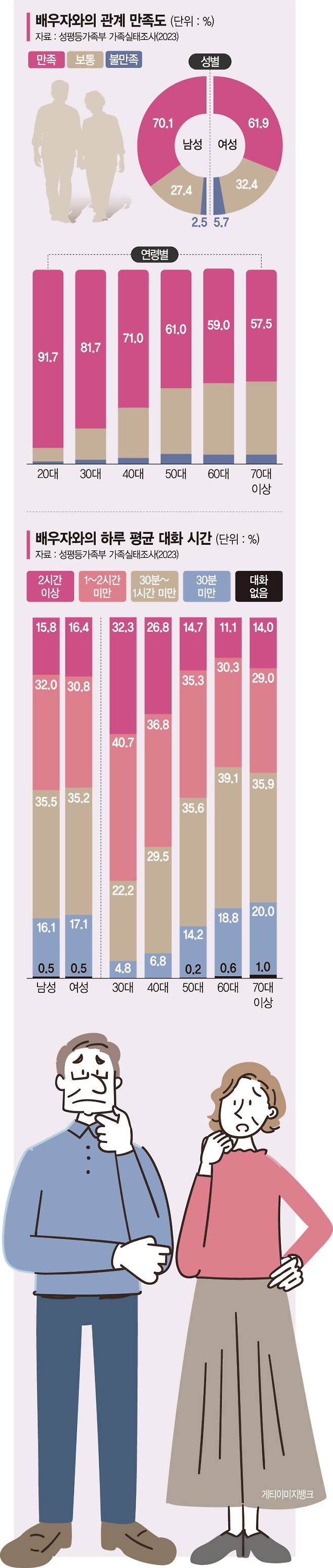▲김 변호사=과도한 의존은 은퇴 후 더 치명적일 수 있다. 부부 모두 신체적 나이가 들어가며 자기 몸을 돌보는 데도 에너지가 든다. 배우자까지 케어해야 한다는 부담이 커지면 함께하는 삶 자체가 점점 싫어질 수 있다. 반면 무관심이 꼭 모두 위험한 것은 아니다. 서로에게 기대지 않아도 각자 친구·취미로 스스로를 충족시키는 '건강한 무관심'도 있다. 다만 증오나 체념에 기반한 무관심이라면 작은 트리거로도 파탄 가능성이 커진다.