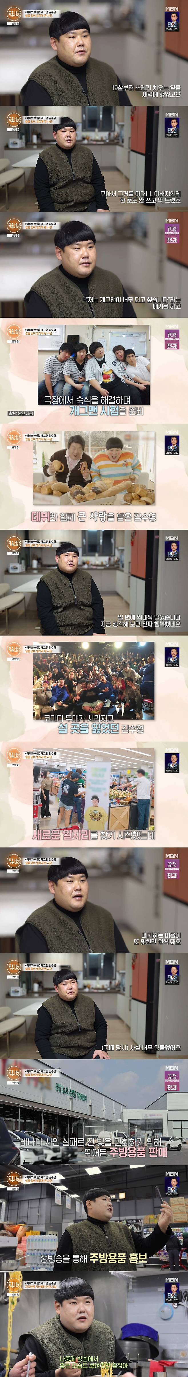 12일 방송된 MBN '특종세상'에서는 개그맨에서 현재는 주방용품 판매원이 된 김수영의 근황이 공개됐다.