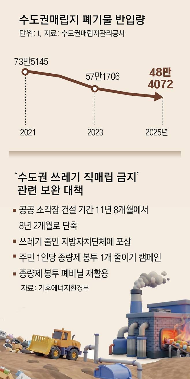 하지만 2021년 직매립 금지 정책을 발표한 뒤 5년 동안 주민 반대 등으로 수도권에 공공 소각장이 단 한 곳도 들어서지 않은 상황에서 건설 기간 단축만으로는 문제를 해결하기 어렵다는 지적이 나온다.
