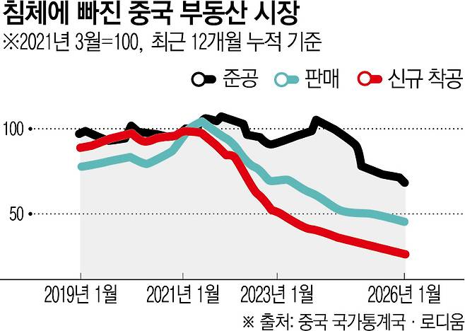 무엇보다 수억 중국 가구의 평생 저축이 집중된 부동산 가격이 빠져도 너무 빠졌다는 것이 가장 큰 문제다. 맥쿼리그룹에 따르면 정부가 부동산시장 버블이 갑작스럽게 붕괴하는 것을 막고자 2021년 신용 규제를 도입한 이후 집값 상승분의 약 85%가 증발했다.