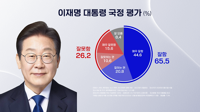 JIBS 제주방송과 제민일보, 뉴스1과 미디어제주 등 제주지역 언론 4사 여론 조사 결과, 이재명 대통령이 국정 수행을 잘한다는 응답이 65.5%였습니다.