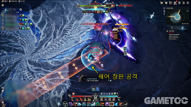 - 대상자 외 플레이어는 직선 장판 공격 위로 합류해 대미지 분산