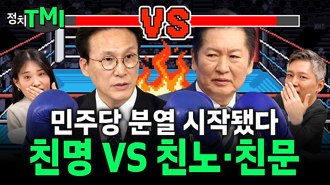 14일 동아일보 유튜브 ‘정치TMI’는 친노, 친문(친문재인)이 뒷배가 된 친청(친정청래) 세력과 친명(친이재명) 세력의 계파 다툼을 집중 분석했다.