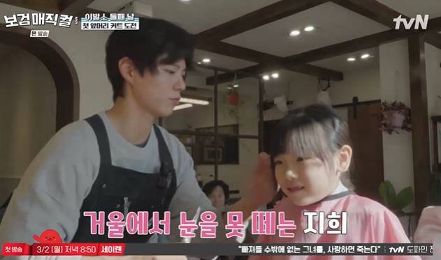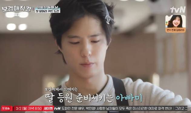 이날 한 초등학생 손님이 "아이브 장원영 헤어스타일을 하고 싶다"고 요청하자 박보검은 "삼촌이 한번 해보겠다"며 직접 스타일링에 나섰다.