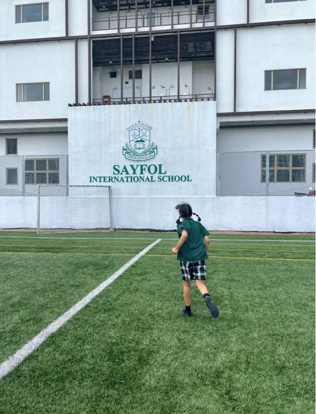 공개된 사진에는 'SAYFOL INTERNATIONAL SCHOOL'이라는 학교 간판 앞에 선 로아의 뒷모습이 포착됐다.