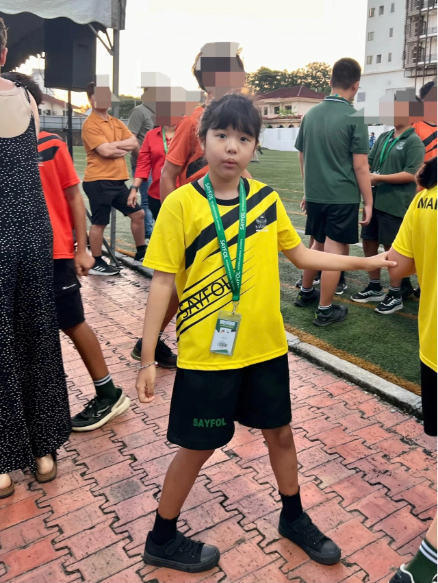 또 다른 사진에서는 체육활동을 위해 노란 유니폼을 입고 운동장에 선 모습도 담겼다.