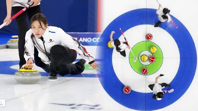 2대2로 맞선 4엔드, 김은지가 던진 노란 스톤이 천천히 하우스로 향합니다.
